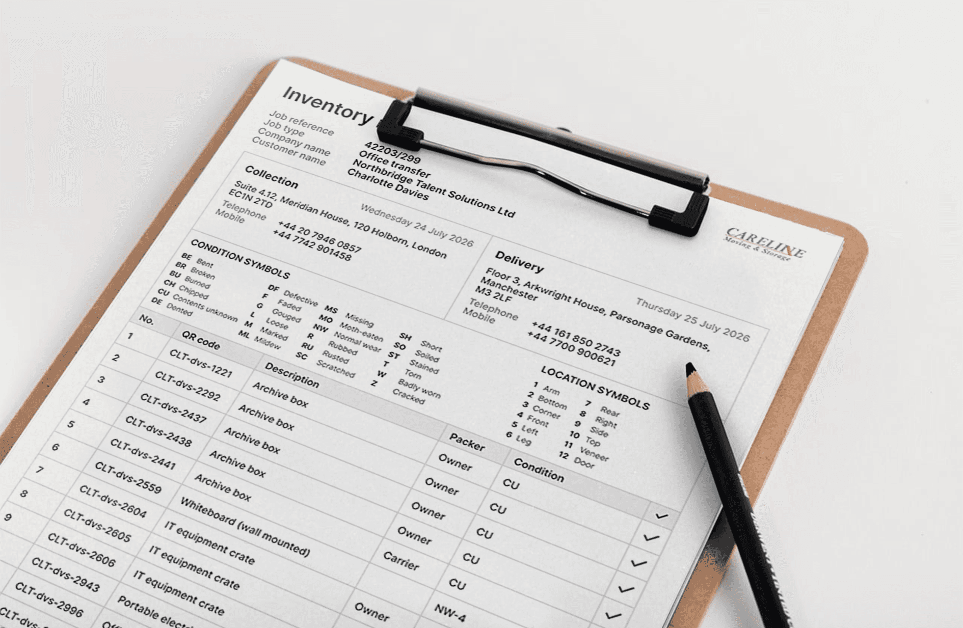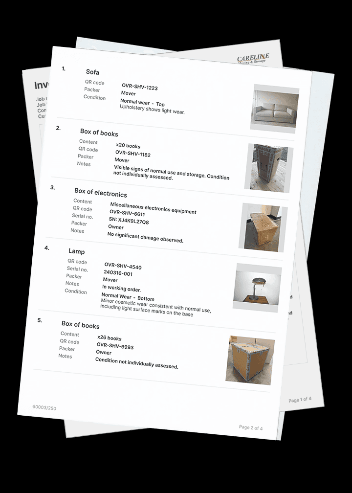 I was tasked with creating two styles of report. A basic version, for the movers to allow for quick scanning, and a detailed client copy that provides clear, detailed item information.