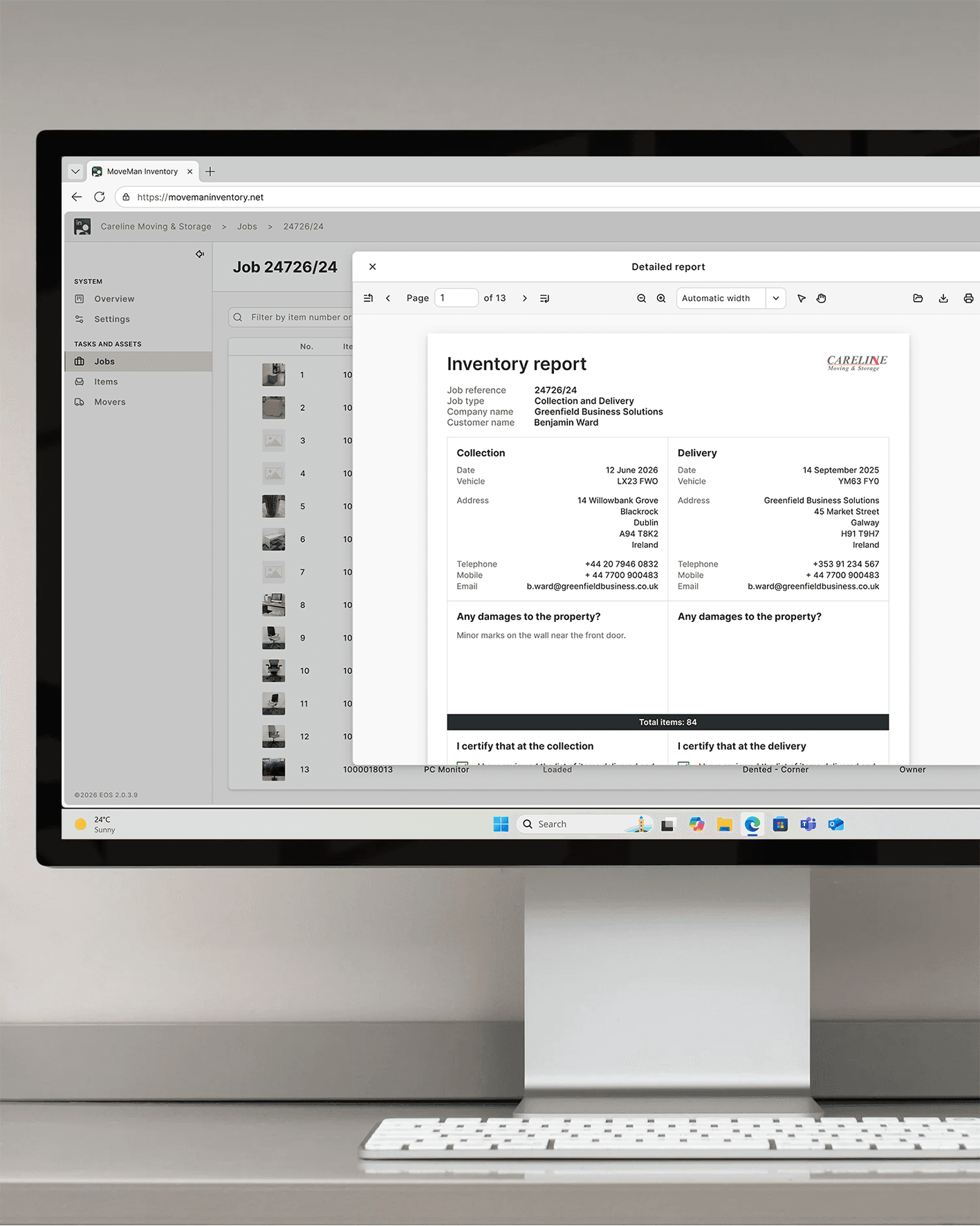 Within MoveMan Inventory, operations teams can view and print a comprehensive report using the information drawn from a created inventory, or completed job.